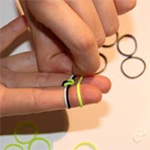 1-Accrocher un élastique autour de l’index et du majeur en formant un 8. |