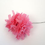 9- Ebouriffer le papier crépon pour obtenir un pompon, puis couper le fil à ras.